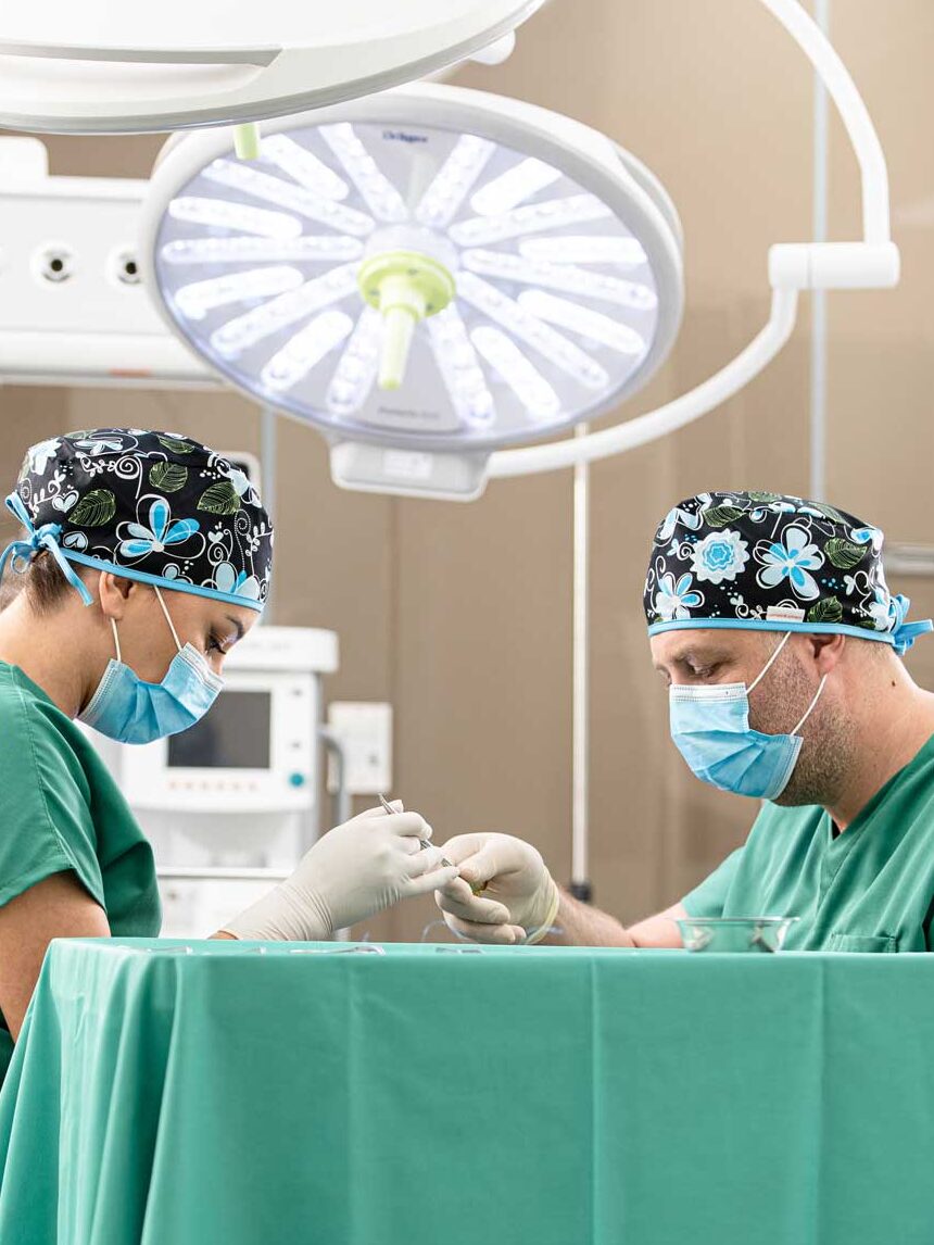 Naši hirurzi imaju bogato iskustvo u liječenju, kako elektivnih operativnih zahvata zbog hernija, kalkuloze žučne kese, zahvata na tankom i debelom crijevu, tako i hitnih stanja kao što su ukliještene hernije, upale crvuljaka – “slijepog crijeva”, upale žučne kese. Posvećeni smo individualizovanom pristupu svakom pacijentu, koristeći najnovije protokole, kako bismo osigurali maksimalnu bezbjednost i efikasnost tretmana.